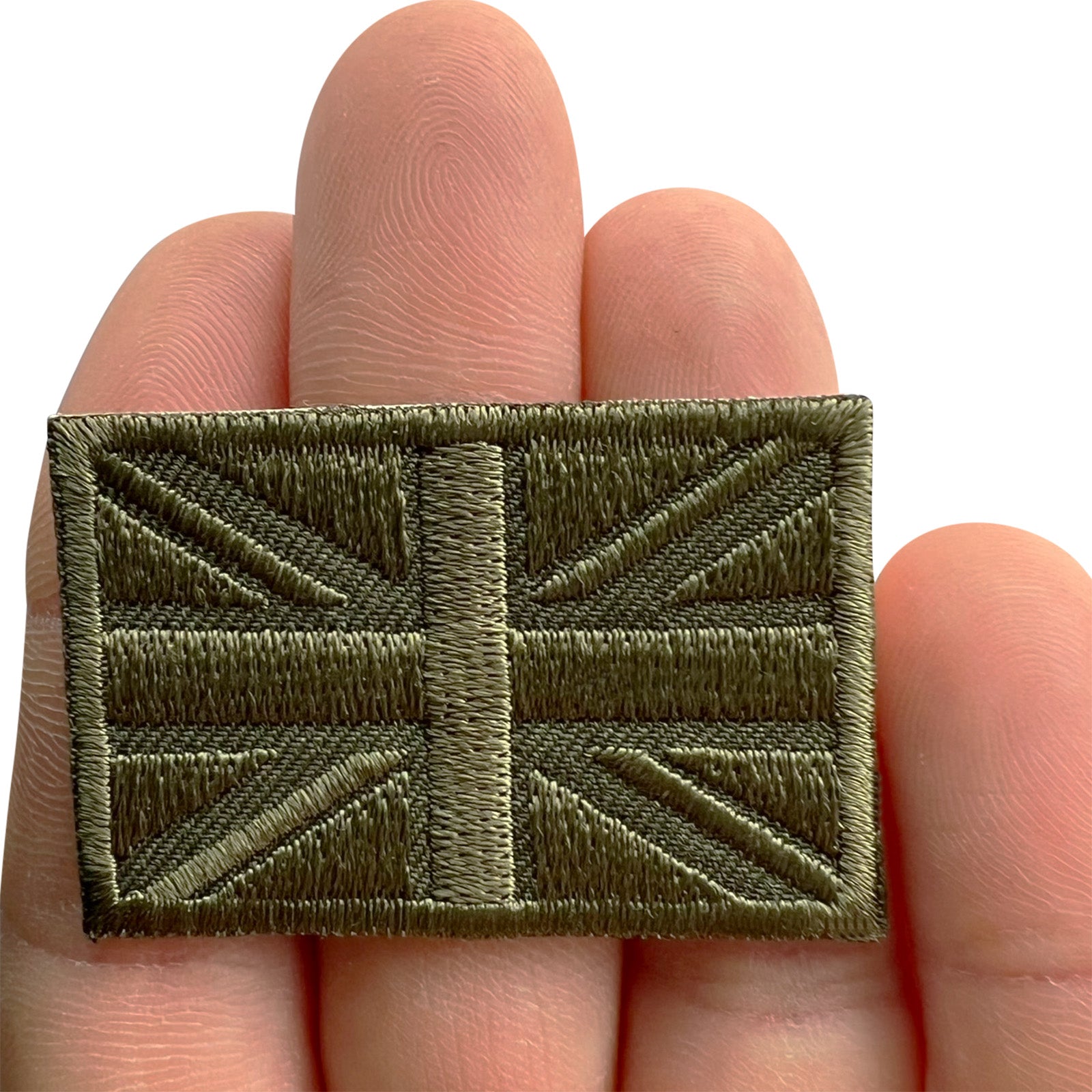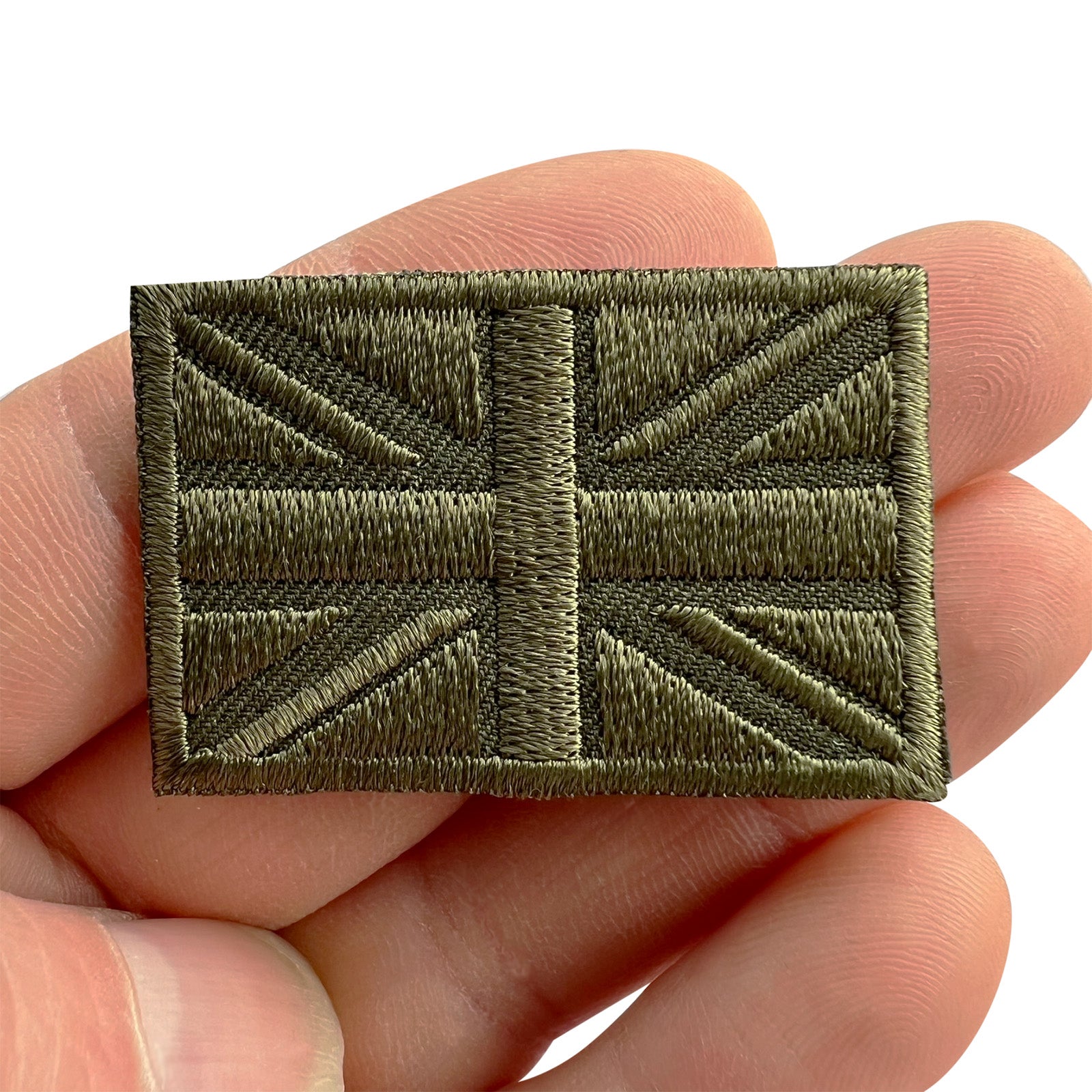 Army Green Mini UK Flag Patch – Iron or Sew On Union Jack MOD Embroidered Badge