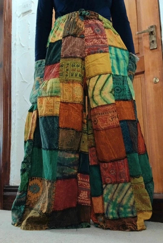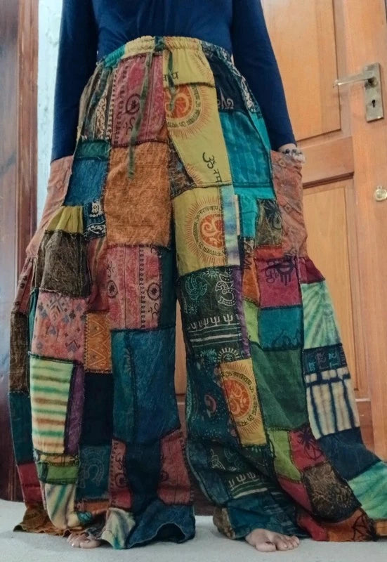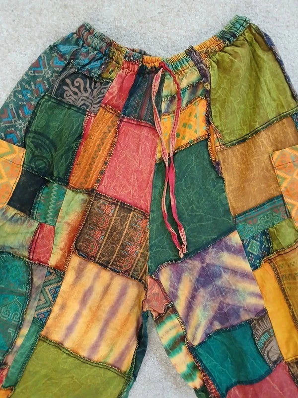 Let your style shine with these bold and breezy bohemian patchwork harem pants. Each pair is carefully handmade using traditional tie-dye techniques, with fabric patches stitched together in aĀ random, one-of-a-kind arrangement. No two are ever alikeāyour pants are truly unique to you. Whether you're exploring markets, relaxing at home, or heading to a festival, these wide-leg trousers are designed to move with youāand turn heads while doing it. šØš§āļø