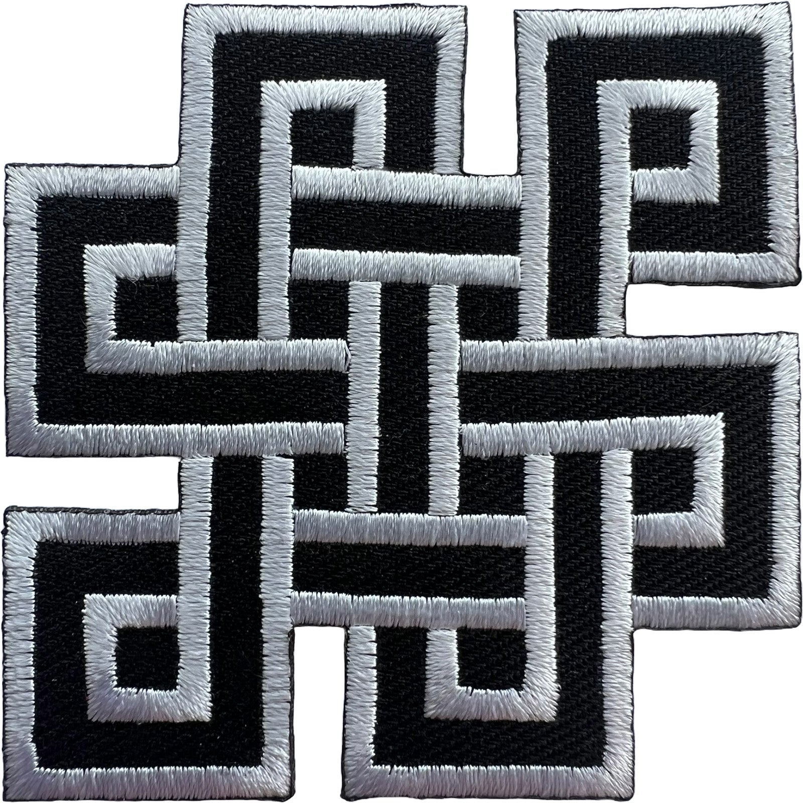 Bring symbolism, balance, and clean geometric style to your clothing and accessories with this beautifully embroidered Endless Knot patch, stitched in bold black and white thread for a striking, high-contrast finish. Measuring approximately 6.6 cm in diameter, this compact yet eye-catching badge features crisp white embroidery framed by deep black outlines, creating a timeless graphic look that stands out on denim, cotton, canvas, and most everyday fabrics.
