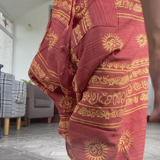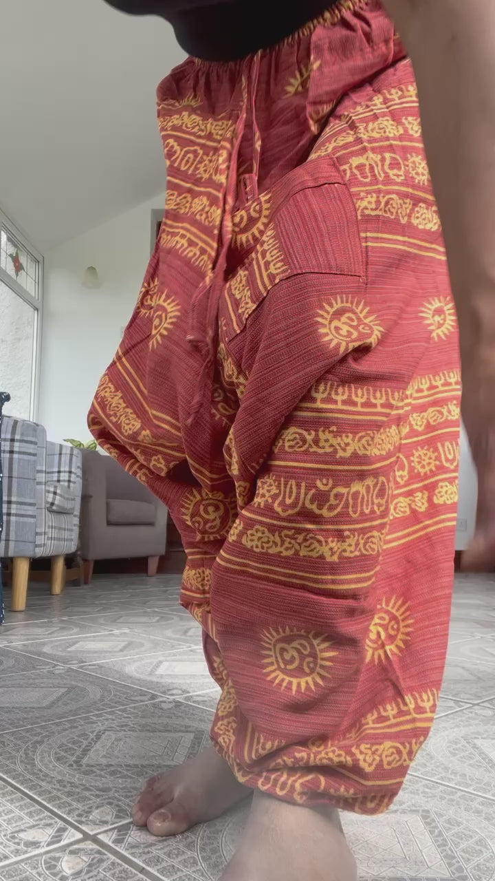 Experience the perfect fusion of traditional artistry and modern style with our Orange Red Thai Harem Pants. Whether you're channeling your inner gypsy, Aladdin, or hippie, these trousers offer a harmonious blend of comfort, style, and cultural richness. Embrace the freedom of movement and the joy of wearing a truly unique and handcrafted garment with every step you take.