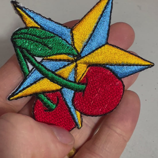 Don't miss out on this delightful embroidered badge! Add the Red Cherry Star Patch to your cart today and let your creativity shine.